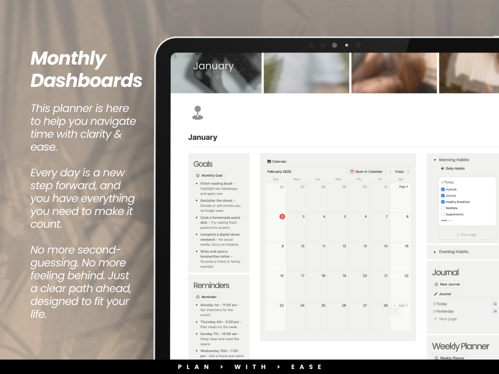 With quarterly, monthly, weekly, and daily views, you’ll always know what’s coming next, whether you’re setting big goals or just figuring out what’s for dinner.