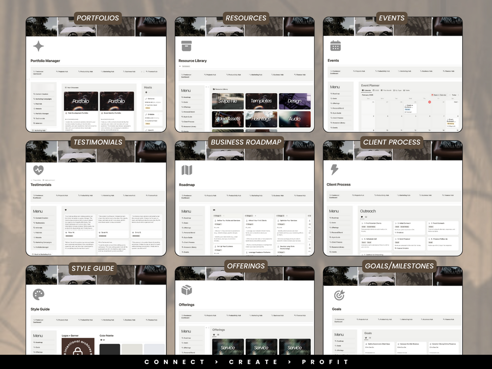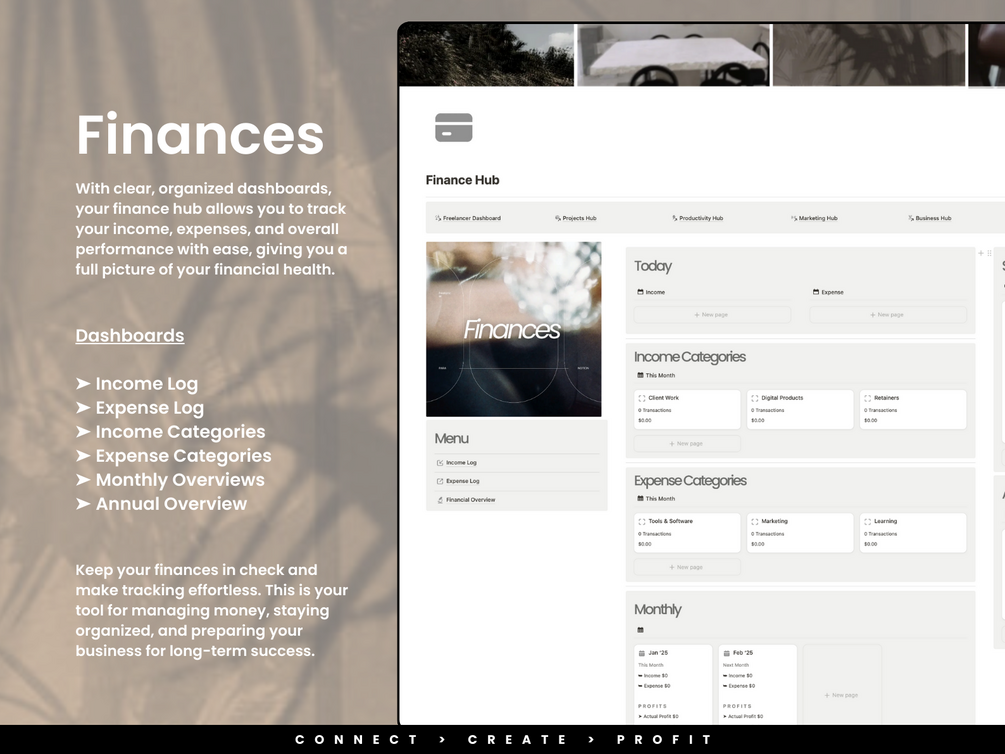A thoughtfully designed system for freelancers and solopreneurs who want to stay organized, attract dream clients, and grow their business with ease. This Notion workspace helps you manage projects, clients, marketing, and finances all in one beautifully structured place.