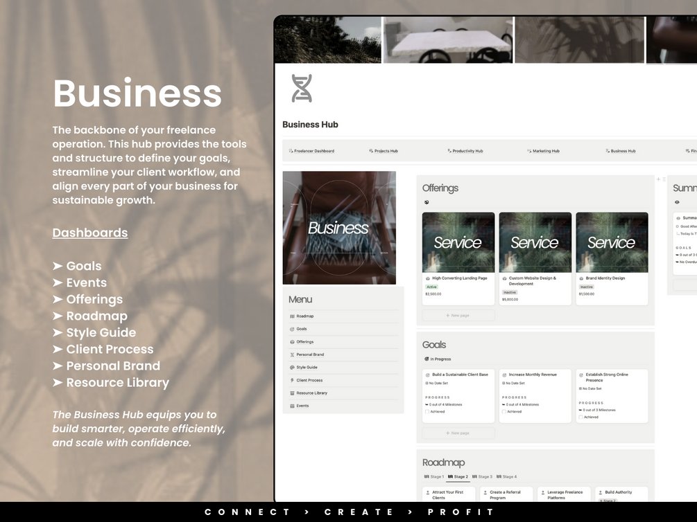 πΌ Business Hub β Structure and expand your freelance career with confidence.