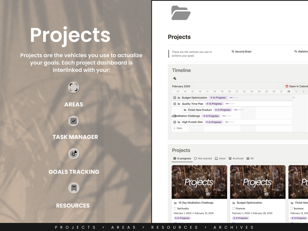 A PARA-inspired Notion setup designed to keep you clear, focused, and organized so you can spend more time on what truly matters.